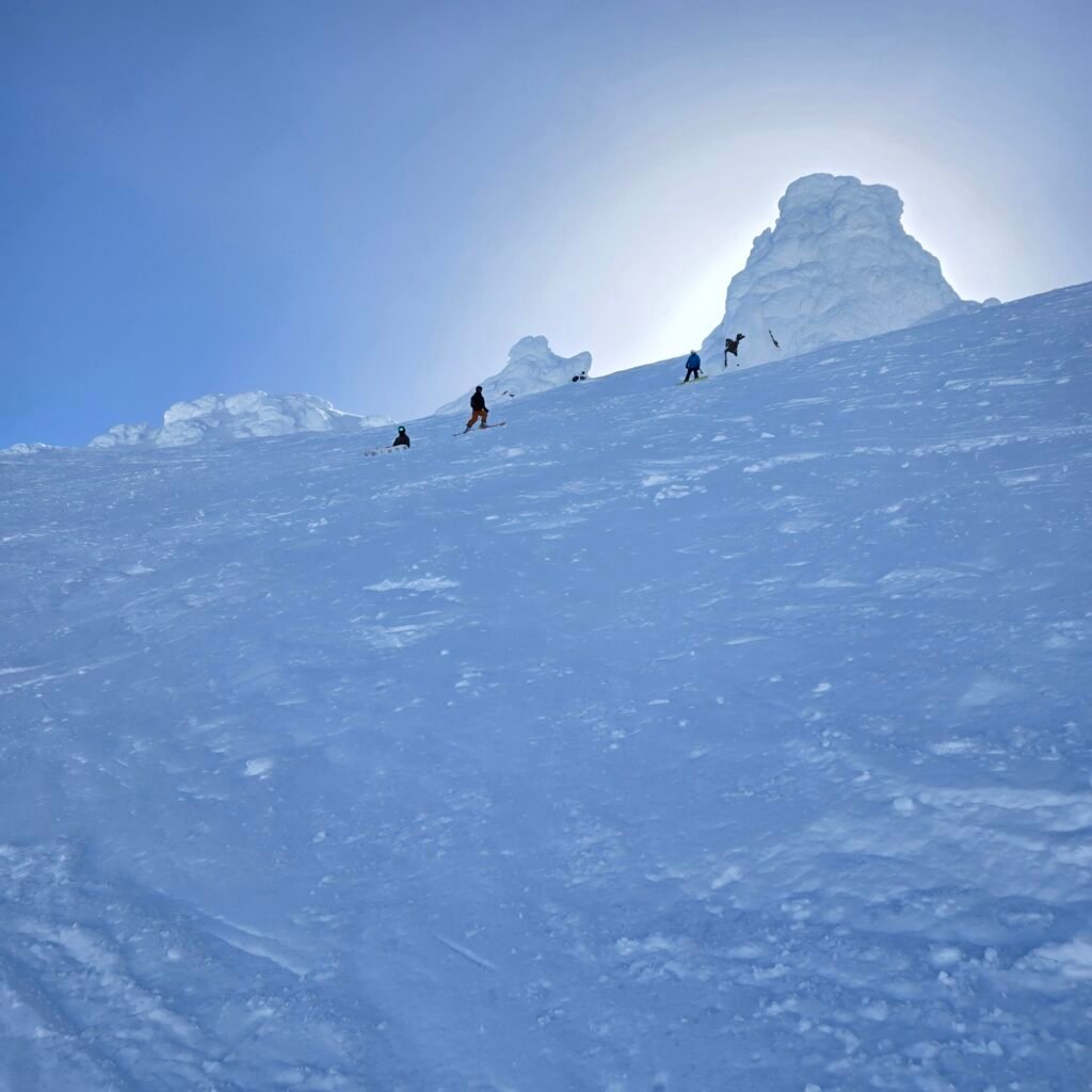 Longest vertical drop in the US. Because of the glacier farming, very long season. Flatter than meadows, gully’s are great natural half pipes.