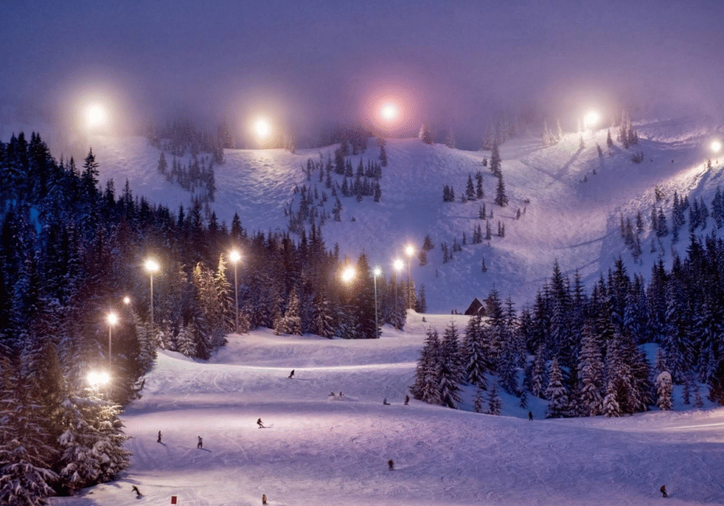America’s largest night skiing. Nightskiing/boarding. The bowls offer steep & challenging terrain.